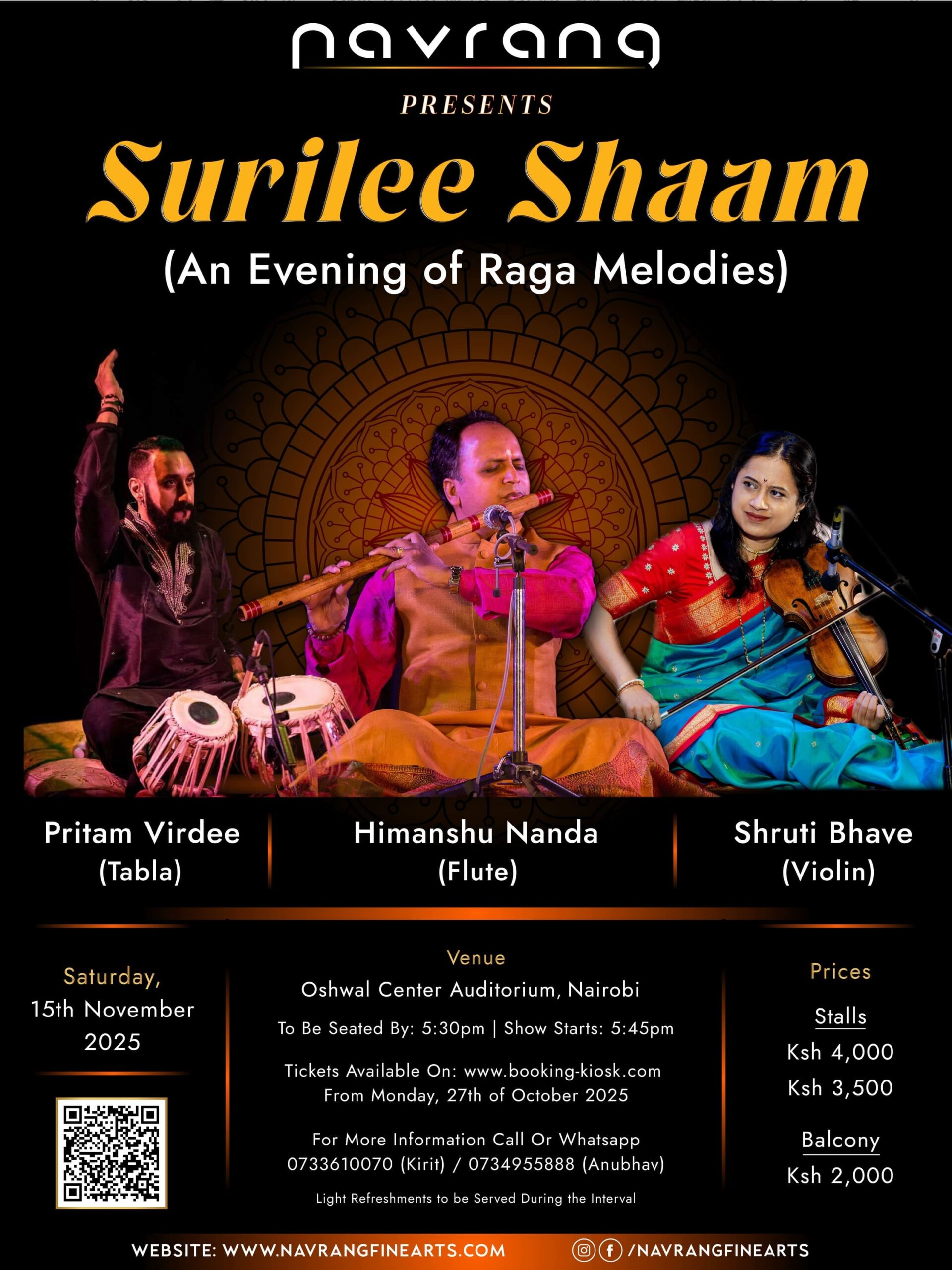Tickets will be on sale from the 10th of March and will be available online at www.navrangfinearts.com (or scan the QR Code)